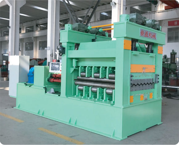 本機床為輥式金屬板料整平專用設(shè)備,通常由動力、主機和電器控制等部分組成。利用多輥工作原理,使板料在上、下校平輥之間反復(fù)變形,消除應(yīng)力,達到校平的目的。在上、下排工作輥外側(cè),設(shè)剛性支撐輥(輪),構(gòu)成四重式組輥結(jié)構(gòu)。板料通過本機校平,可明顯改善其平整狀態(tài),提高工件的質(zhì)量。可獨立工作,用于單塊板材的校平;亦可在本機前配置開卷、引料,后面配置剪切、垛料及聯(lián)機機構(gòu)等,通過控制系統(tǒng)連成性能完備的生產(chǎn)線,對金屬卷材進行整平、分切。